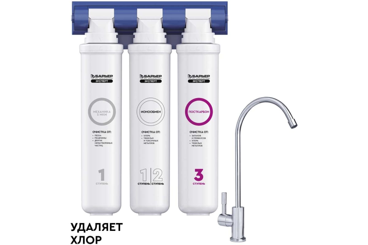 Трехступенчатый быстросъемный фильтр БАРЬЕР ЭКСПЕРТ Стандарт - это компактный проточный фильтр для базовой доочистки городской воды от хлора, тяжелых металлов и механических частиц. Улучшает вкусовые качества воды. Удобная конструкция позволяет разместить фильтр даже на небольшой кухне. Производительность - 2 л/мин. Ресурс 10000 литров.