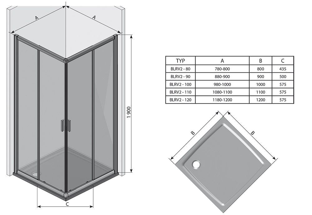 ----Душевое ограждение прямоугольный раздвижной Ravak Blix BLRV2К-120 блестящий+транспарент