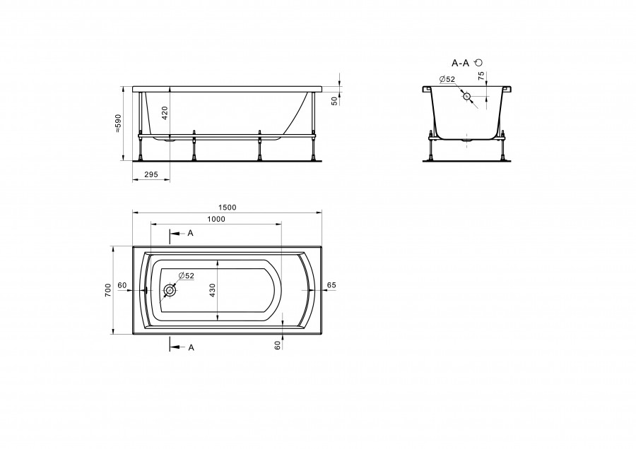Ванна акриловая SANTEK МОНАКО 150*70 (1.WH11.1.976)