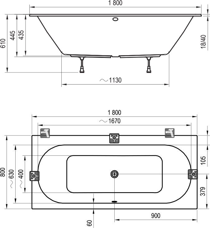 Ванна акриловая RAVAK CITY (180*80) C920000000