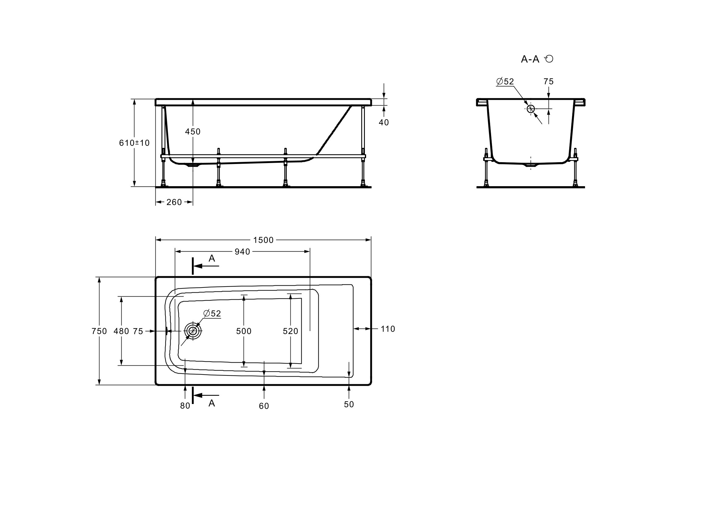 Ванна акриловая Roca Elba 150*75, прямоугольная (248509000)