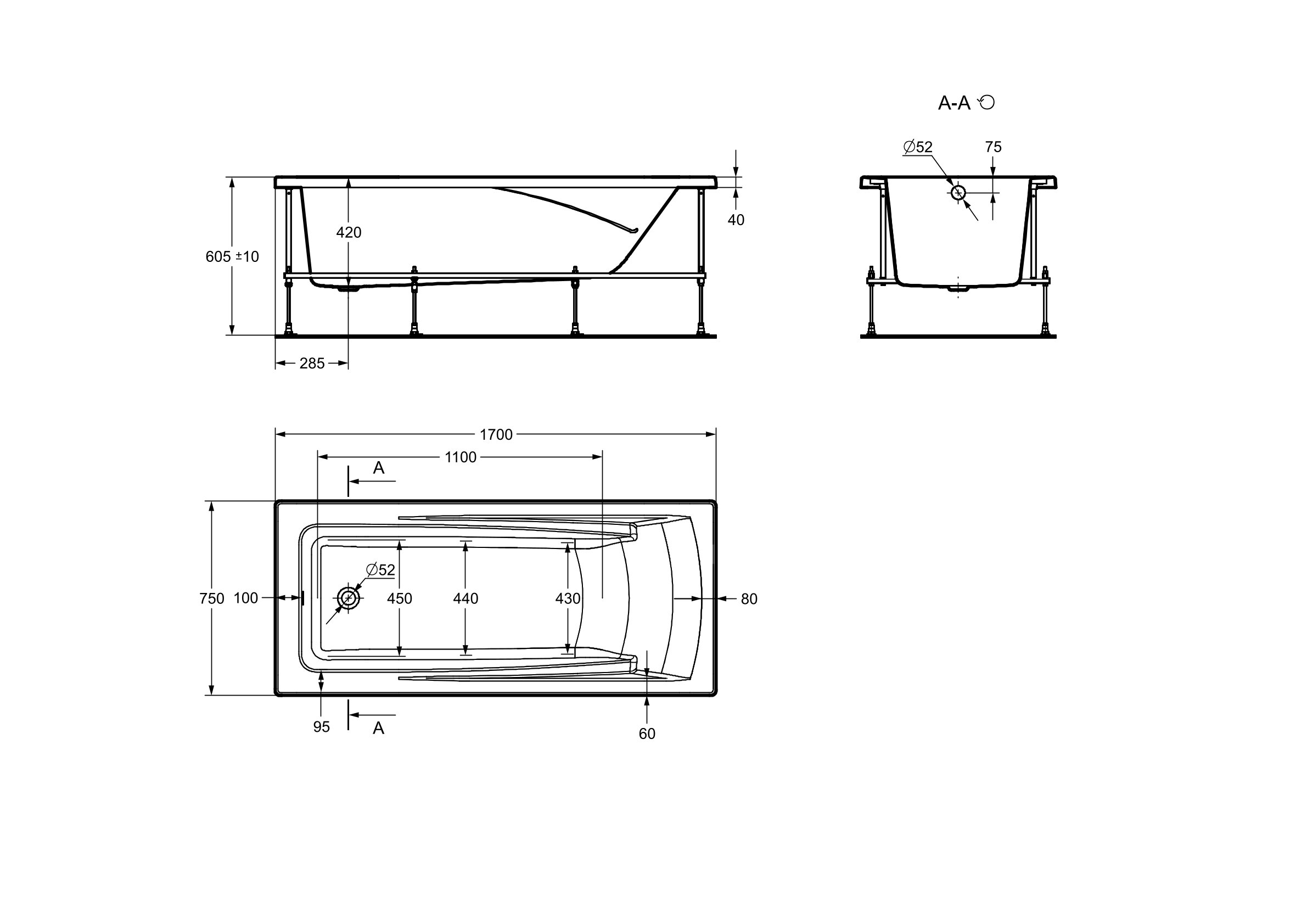 Ванна акриловая ROCA HALL (170*75) ZRU9302768