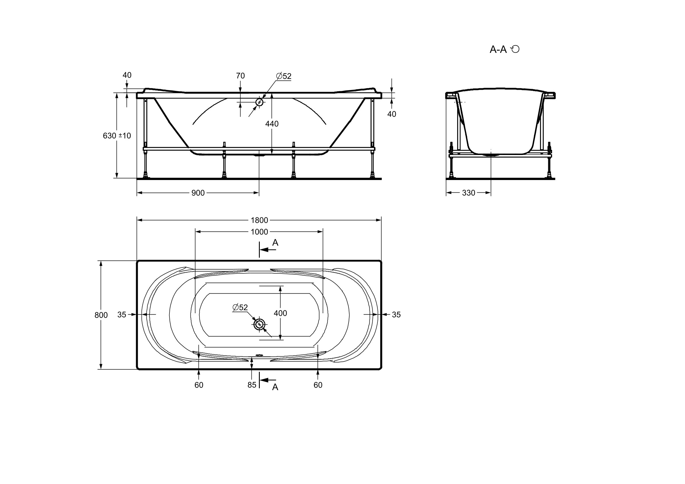 Ванна акриловая Roca Madeira 180*80, прямоугольная, белая (248525000)
