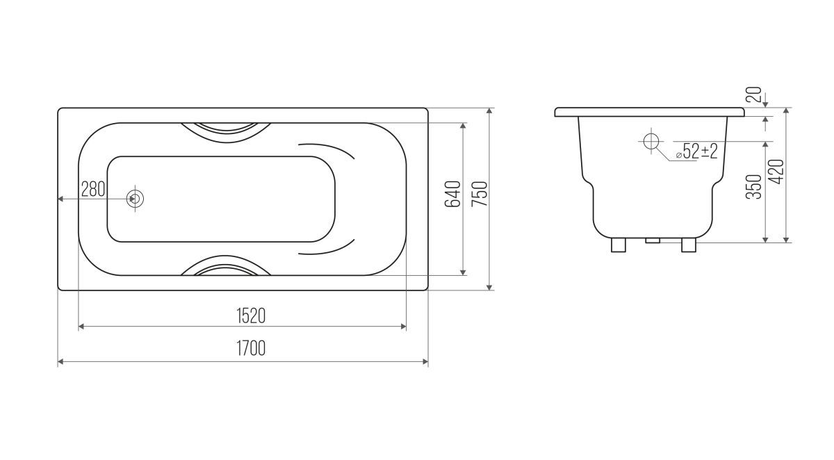 Ванна чугунная SaVanna FUSION 170*75*42 с ручками и ножками