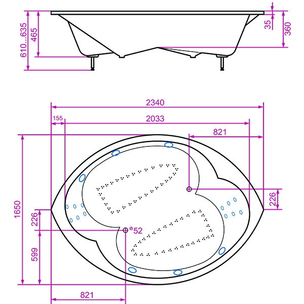 -----Ванна из литьевого мрамора Astra-Form Афродита, технология PFI (2340х1650)