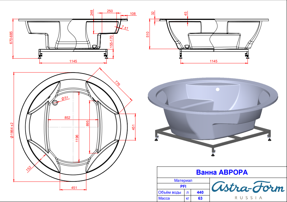 -----Ванна из литьевого мрамора Astra-Form Аврора, технология PFI (1863х1863)