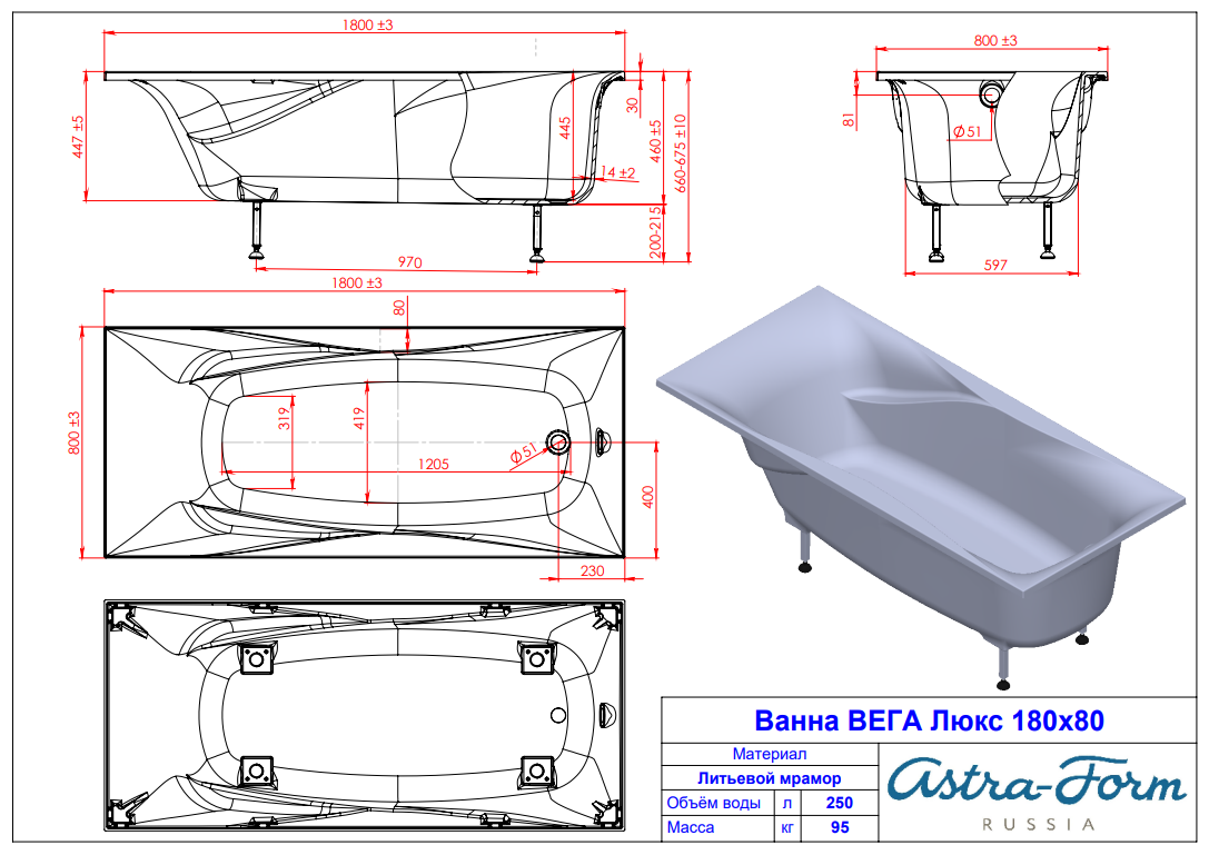 -----Ванна из литьевого мрамора Astra-Form Вега Люкс (1800х800) с ножками