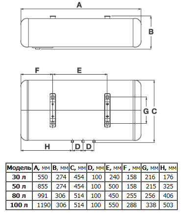 Прибор, объемом 80 литров, работает на двух режимах мощности.